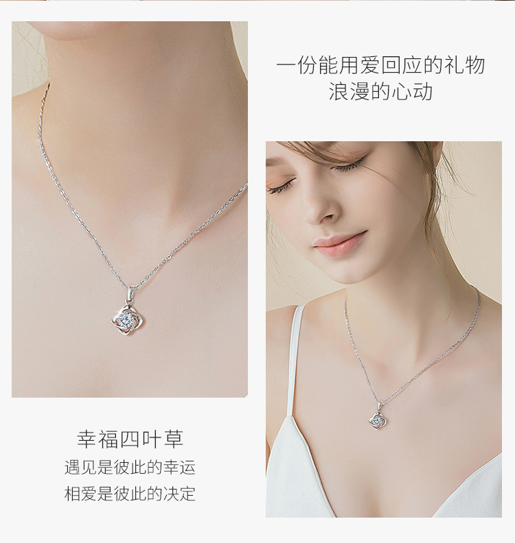 【唯一のネックレス】唯一の四つ葉のクローバーシルバーネックレス女性ファッションアクセサリー鎖骨チェーンカップルは999足の銀の首飾りチェーンをぶら下げて彼女にプレゼントします。【相場見積価格評価】