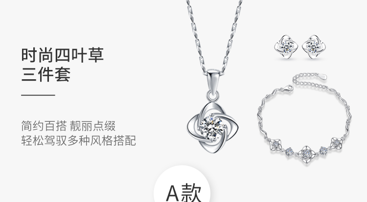 【唯一のネックレス】唯一の銀のネックレス女性の四つ葉のクローバー三点セット999足の銀のネックレス+ブレスレット+ピアスのセットに証明書【相場見積り価格評定】-
