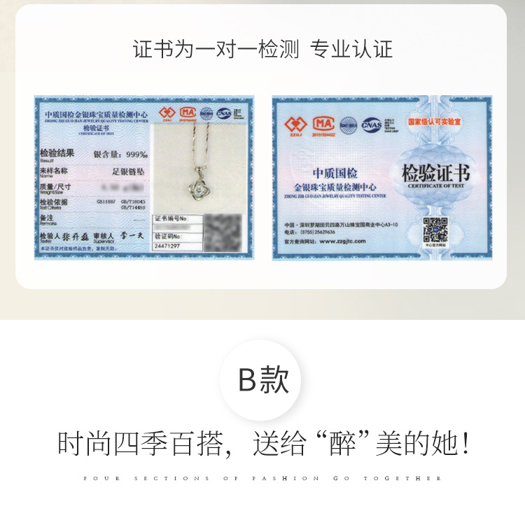 唯一のハート型銀のネックレス女性のファッションアクセサリーはカップルの鎖骨チェーン999足の銀のアクセサリーにぶら下がって、彼女に証明書をプレゼントします。
