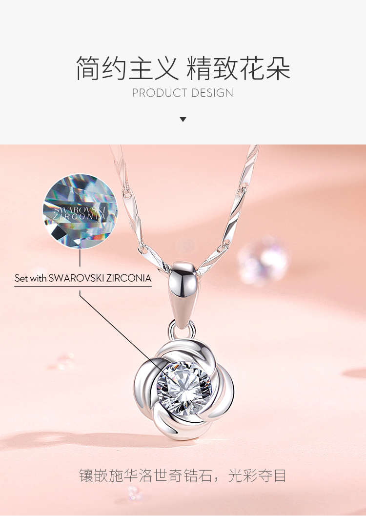 【唯一のネックレス】唯一の四つ葉のクローバーのネックレス女性ファッションアクセサリー999足の銀の鎖骨チェーンのペンダントが彼女の誕生日プレゼントにスワロフスキーのジルコニウムの証明書を入れました。