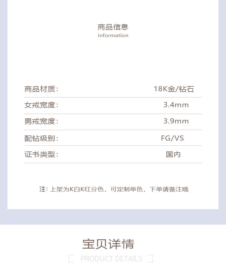 ファゴッサジュエリーローズゴールドダイヤモンドリングカップルペアリング男女の結婚指輪F-G/優白VS/微瑕女戒の色分け
