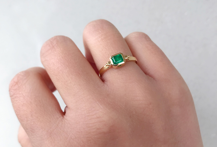 ファゴッサ18 Kエメラルドダイヤモンドの指輪はリバースして、男女兼用のリングを装着できます。