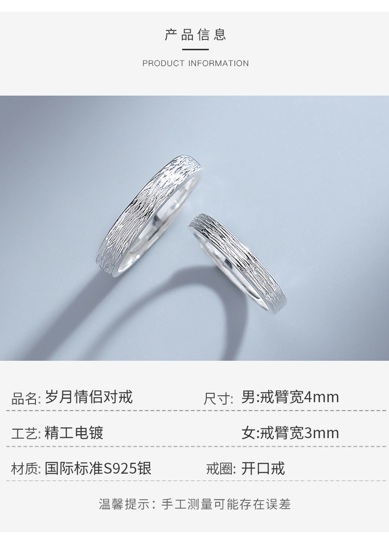 仏梵莎新款の青糸のカップルは戒s 925の純銀の大衆の設計に対して軽奢な指輪の質感を簡潔にして口を開けて環をして男性の金の開口を飾って調節することができます。